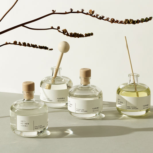 自然に近い香りを目指して エッセンシャルオイルをブレンドしたルームフレグランス。ガラスのボトルに、木のスティックを挿して香りを拡散。リビングルームやバスルーム、オフィスなどを、ナチュラルでニュートラルな香りで包みます。・パインフォレスト :清らかな松葉の香り ・フィニッシュシス :フィンランド人の心の強さ「sisu」。メンソールとブラックペッパー・シンリンヨク :日本語の名前を持つ、スパイシーで古風な森の香り・カレワラ :国民的文学カレワラの物語を香りに表現。フィンランドの自然の香り・ハッピーホリデー :タンジェリンやシナモンで、リラックスしたひとときを・ラップランド[NEW] : 北極圏の原野の澄んだ空気、ベリーと湿原を感じる香り・アーキペラゴ[NEW] :フィンランド沿岸の多島海の美しさを体現。海を感じる香り一部の製品は、空間や用途に合わせて、ミニサイズも選んでいただけます。