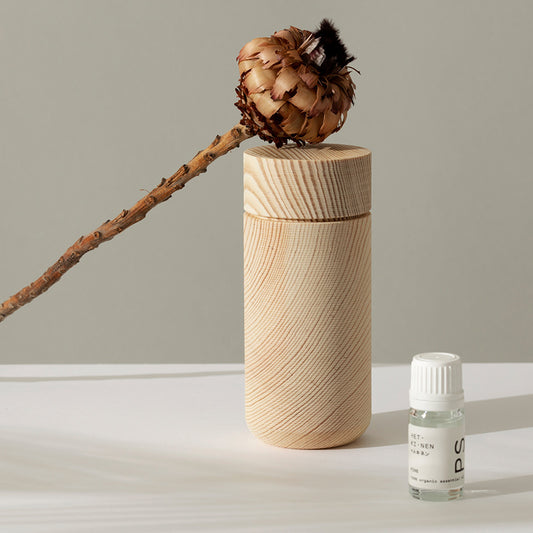 機能を持った美しいオブジェと素晴らしい香りに囲まれたい。その思いから、フィンランドの松の木を使ったディフューザーコレクションが誕生しました。コレクションの着想は、ディフューザーのトップにお気に入りのエッセンシャルオイルを落とし、そこから香りが室内全体に広がるというもの。これ以上に環境に優しく持続可能なディフューザーはありません。ドロップウッドディフューザーには、3つの異なるサイズがあります。どのサイズも開閉可能で、内部にエッセンシャルオイルを1本ずつしまうことができます。ディフューザーは、自宅やオフィスの美しい装飾要素です。 日常にちょっとした贅沢と 香りの楽しみが必要な場所にどうぞ。