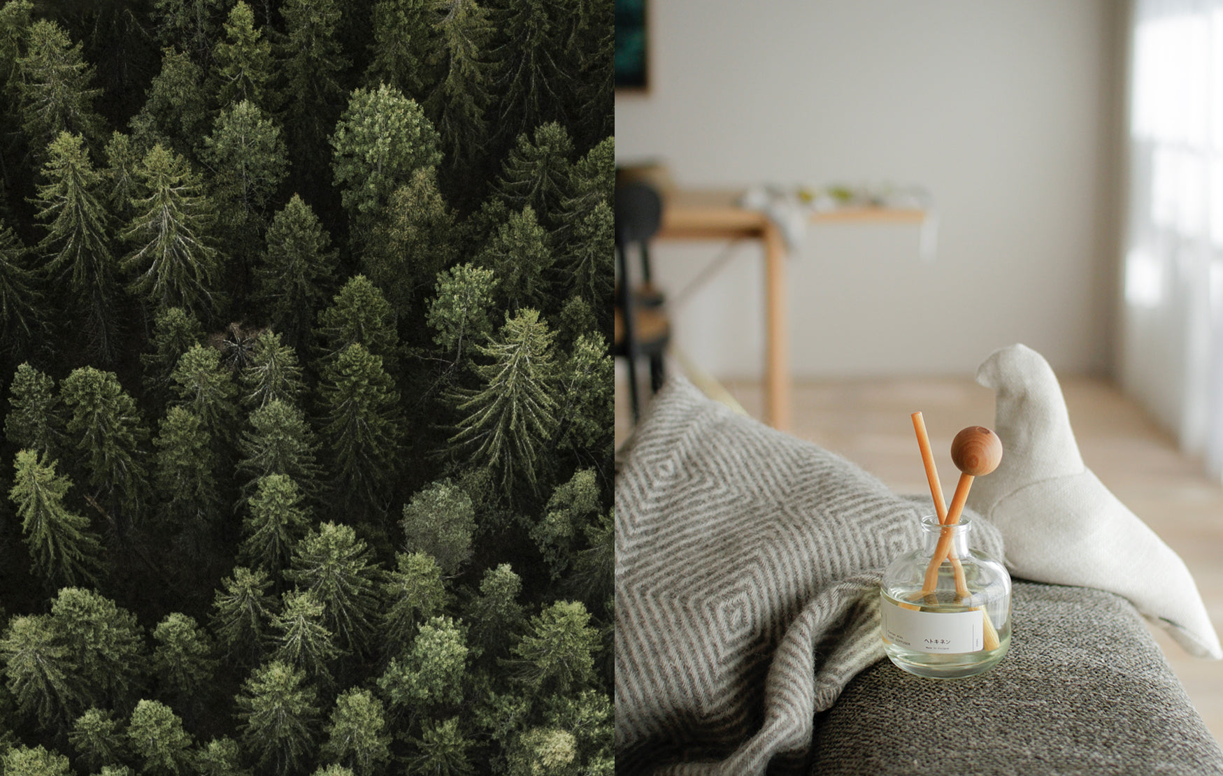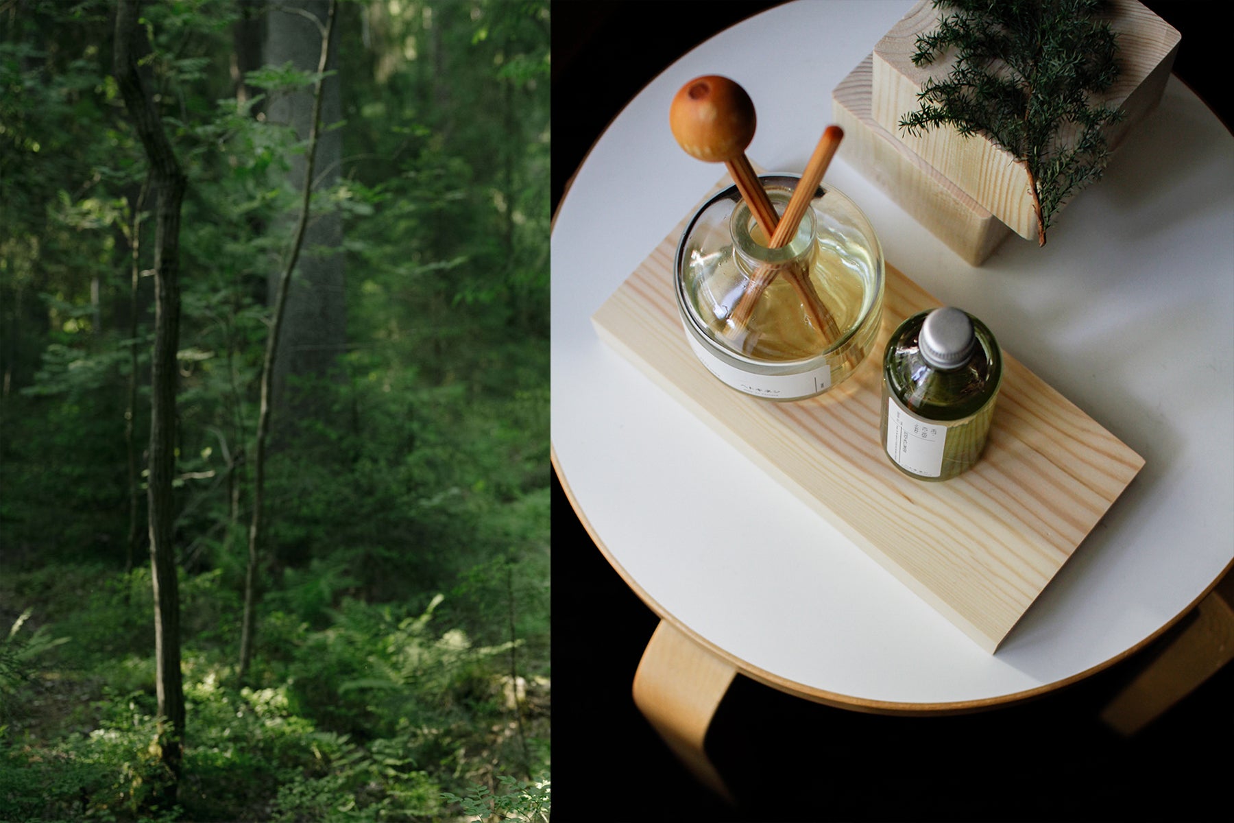 森の木々からインスピレーションを受けて、ホームフレグランスやスキンケアアイテムを作り出しています